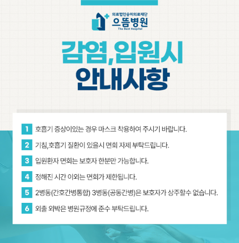 감염, 입원 시 안내사항 페이지 정보 작성자 으뜸병원 댓글 0건 조회 577회 작성일 25-05-13 11:49 목록 본문 이전글재활 간호.간병 통합서비스 운영 25.05.13 다음글으뜸병원 재활의학과 전문의 추가 의료진 진료 개시 안내 25.05.13 댓글 0 댓글목록 등록된 댓글이 없습니다.